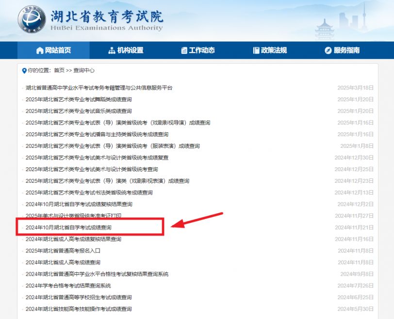 湖北省教育考试院网站自学考试成绩查询官网入口:点此进入