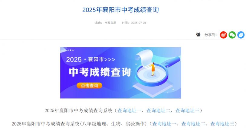 2025襄阳中考成绩查询网站