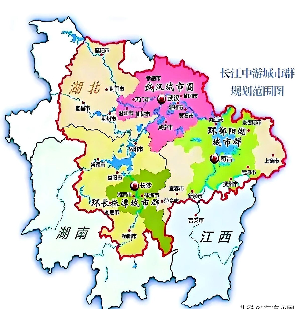 地图摊开一看,武汉像一块吸铁石,1380万人围着它转;长沙才1060万,还摊成三瓣。